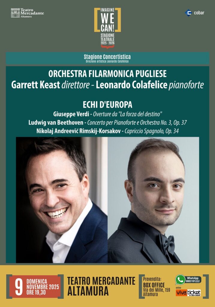 Prosegue la Stagione Concertistica 2025/2026 al Teatro Mercadante di Altamura con il terzo appuntamento, “Echi d’Europa”, in programma domenica 9 novembre alle ore 19:30.