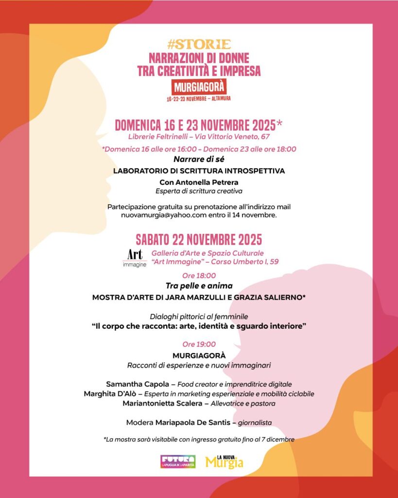 Con #STORIE – Narrazioni di donne tra creatività e impresa, La Nuova Murgia riafferma il proprio impegno nel promuovere la pluralità delle voci femminili, offrendo occasioni di incontro e crescita per una narrazione libera, espressiva e per la costruzione del futuro.