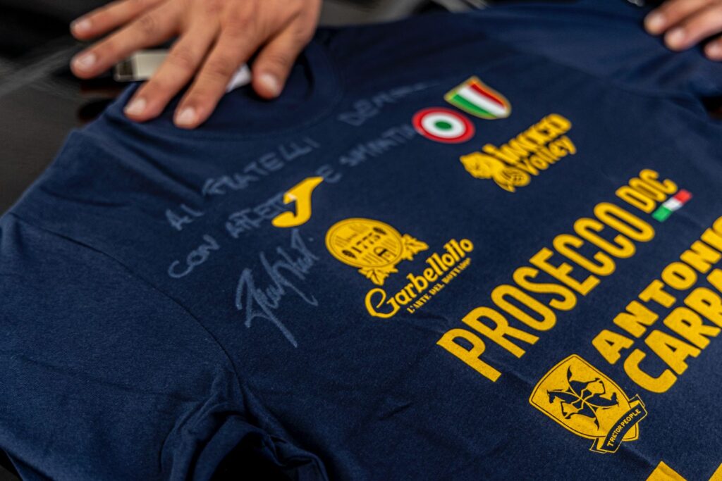 La visita si è conclusa con foto, autografi e un gesto simbolico che rimarrà nella memoria: la maglia dell’Imoco Volley Conegliano, autografata da Santarelli, che verrà incorniciata ed esposta nel salone Auto Denora come ricordo di una giornata capace di unire sport, comunità e impresa.